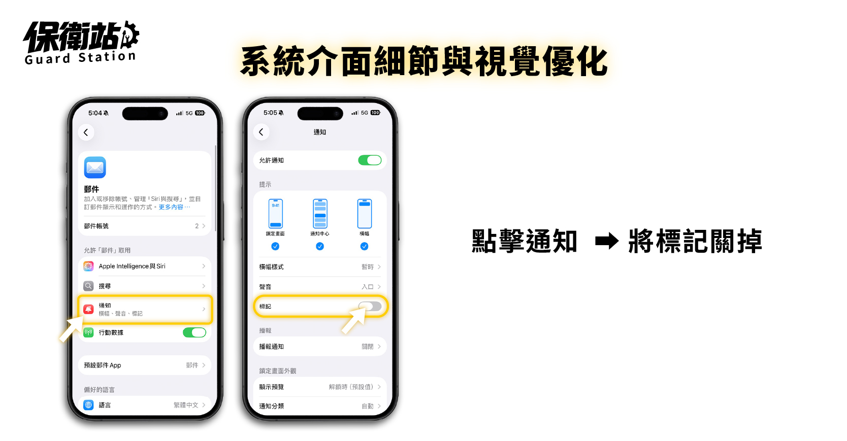 進入「通知」設定後,找到「標記(Badge)」選項,將其關閉。