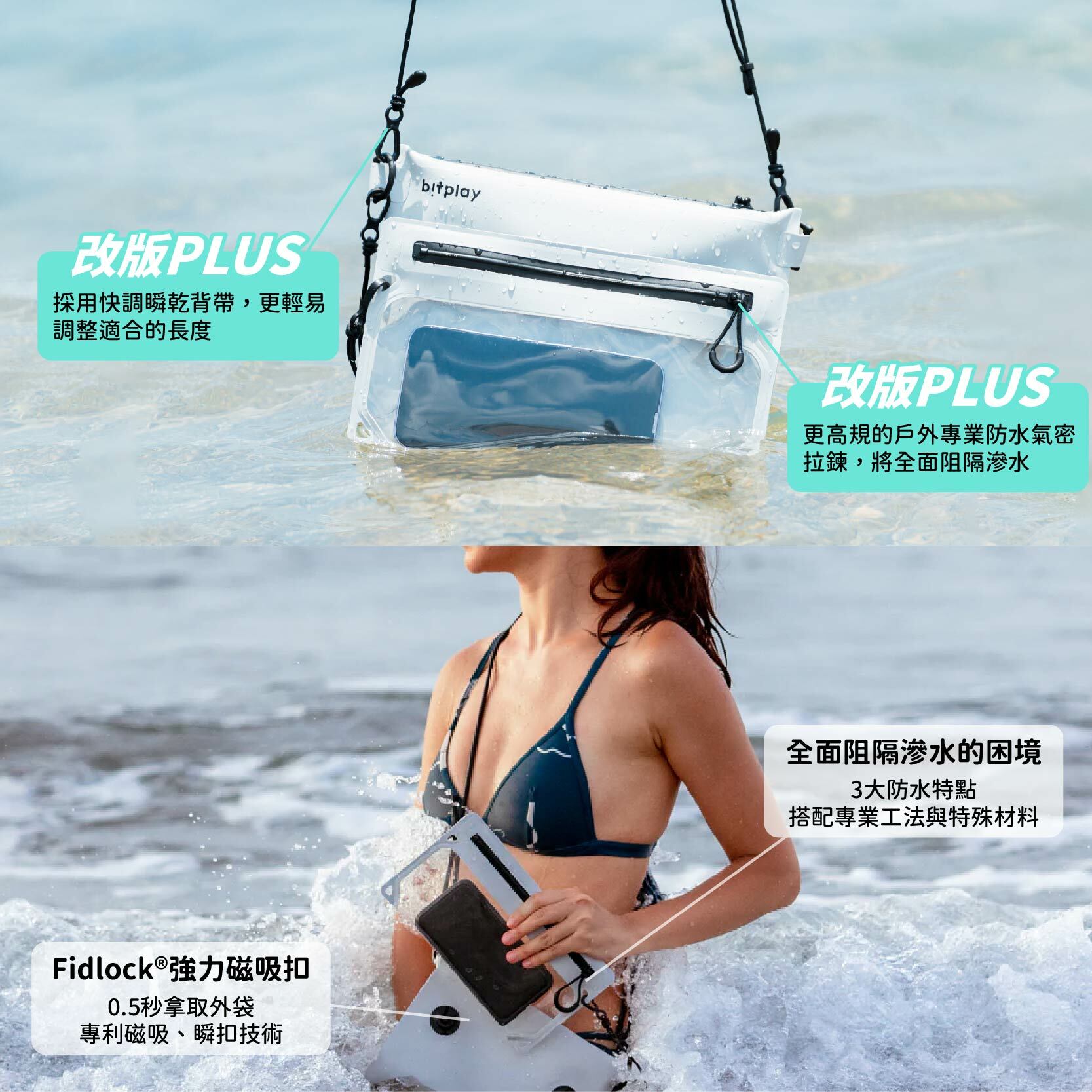 - 材質:420D尼龍 / TPU抗水雙面貼合 / Fidlock®磁吸快扣 / 防水氣密拉鍊