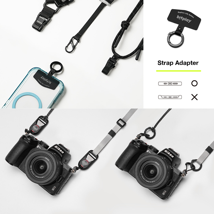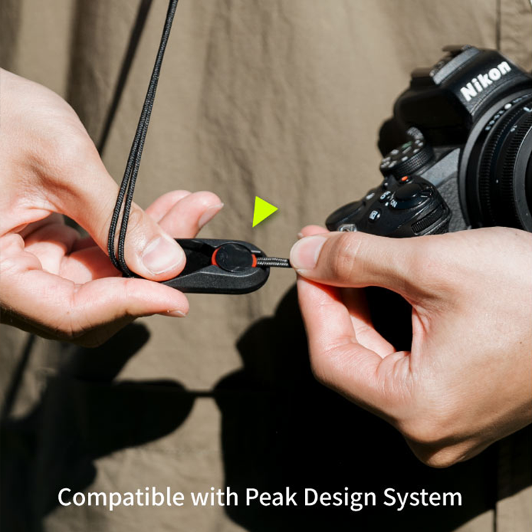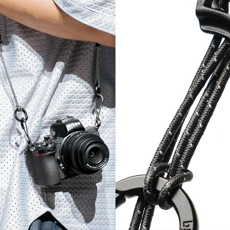 使用UHMWPE抗撕裂高強度營繩作為轉接配件,可承重30kg,可作為相機背帶使用,數位相機、傳統底片相機都能輕鬆背負