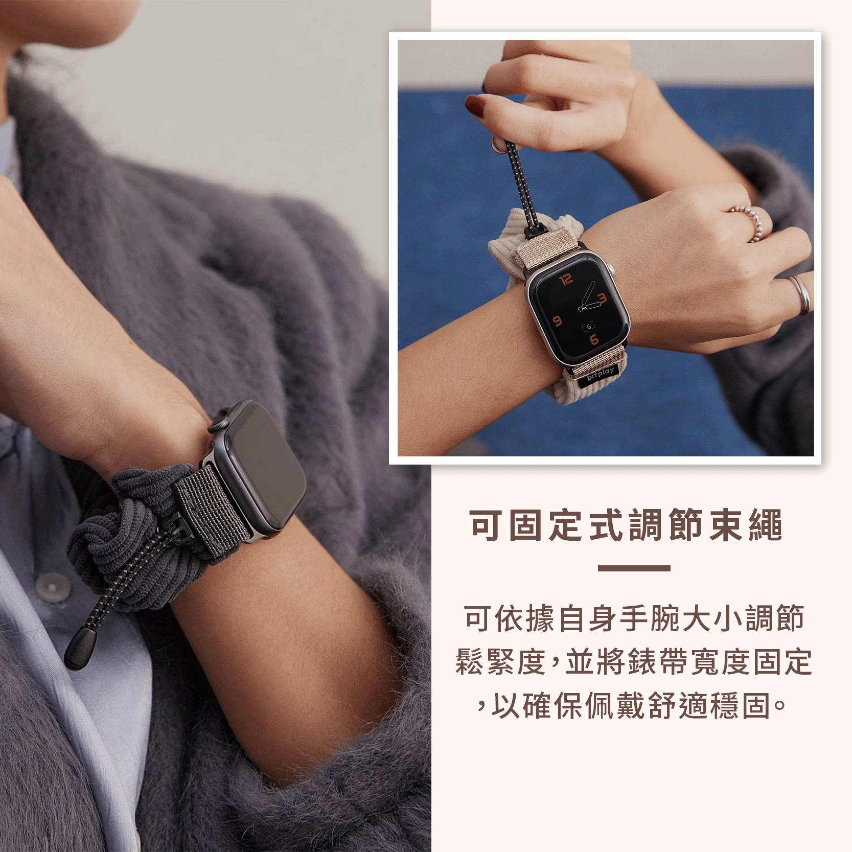 可依據自身手腕大小調節鬆緊度,並將錶帶寬度固定,以確保佩戴舒適穩固。